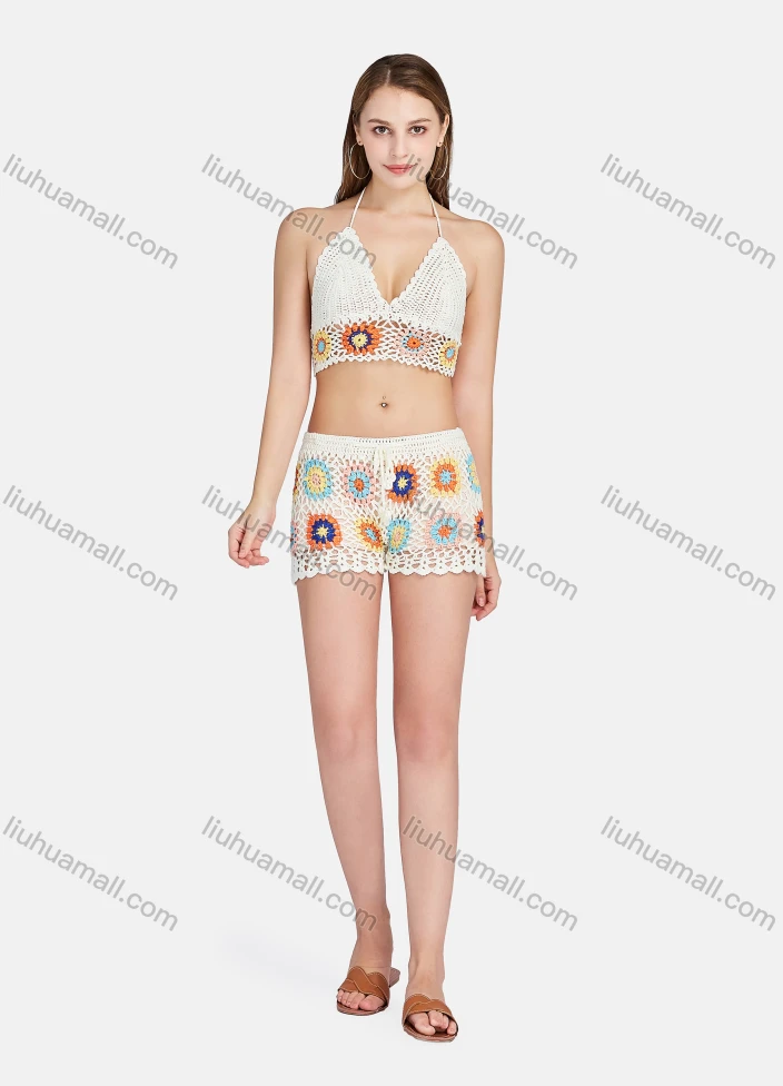 Wholesale Women's Sexy Crochet Floral Cover Up Two Piece Sets Y2318&Y2323#