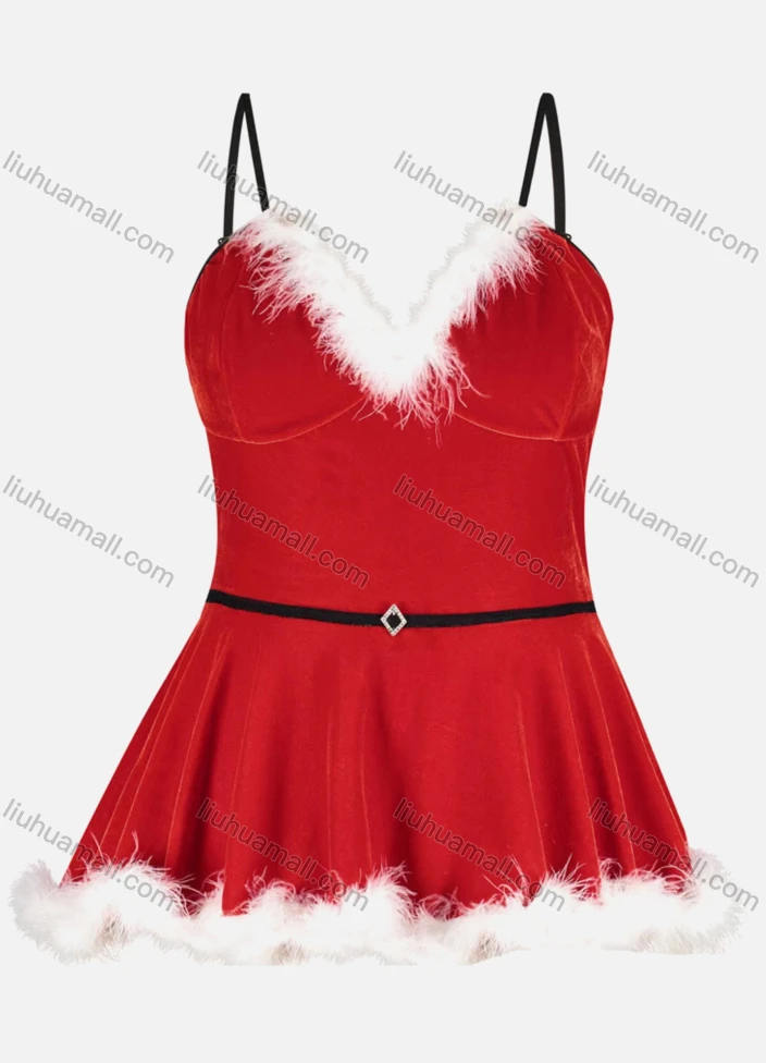 Wholesale Women's Sexy Fuzzy Sweetheart Neck Fuzzy Ruffle Hem Cami Dress 1219#