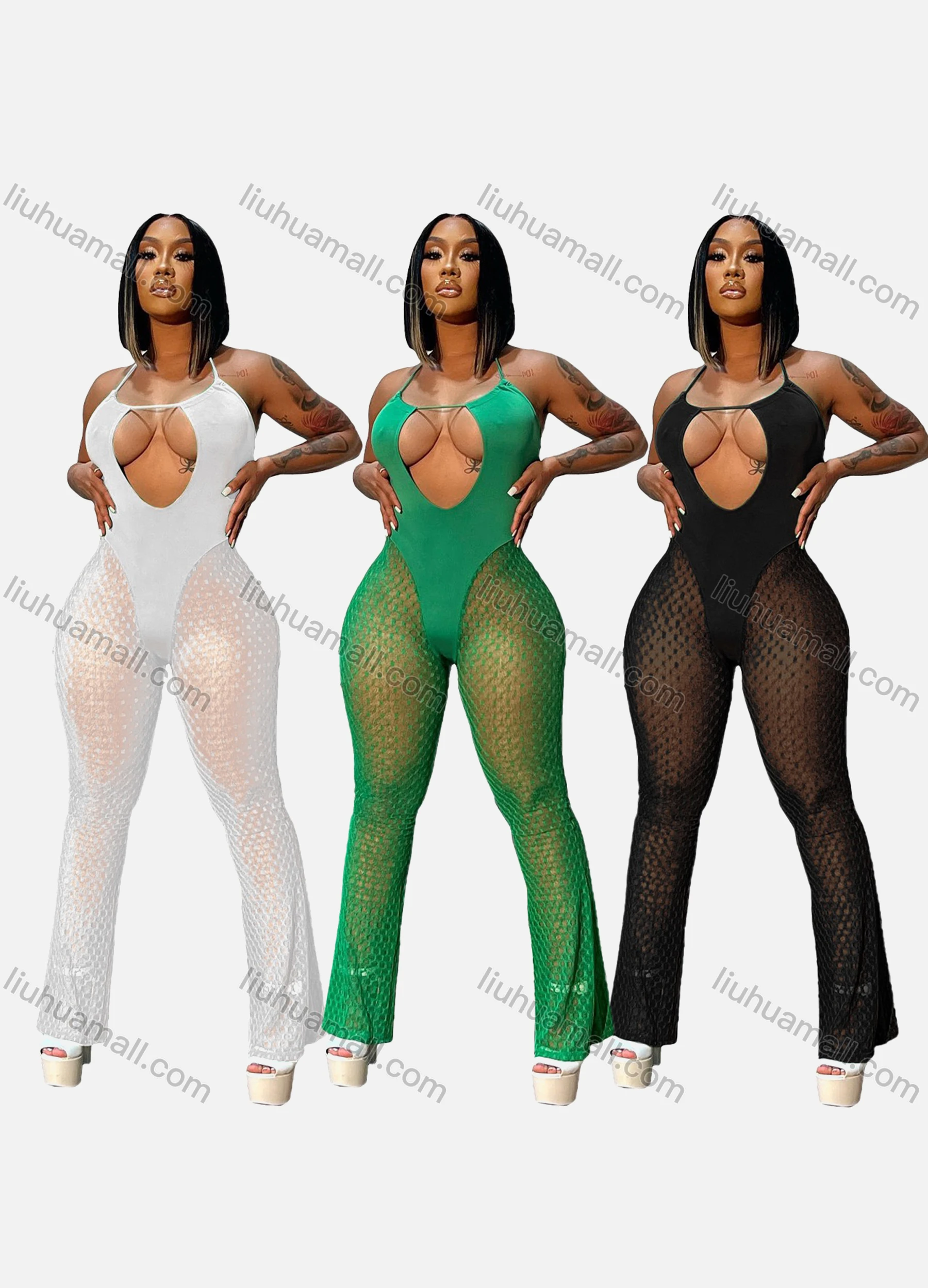 Wholesale Women's Sexy Lace Up Cut Out Backless Semi-sheer Halter Bodysuit