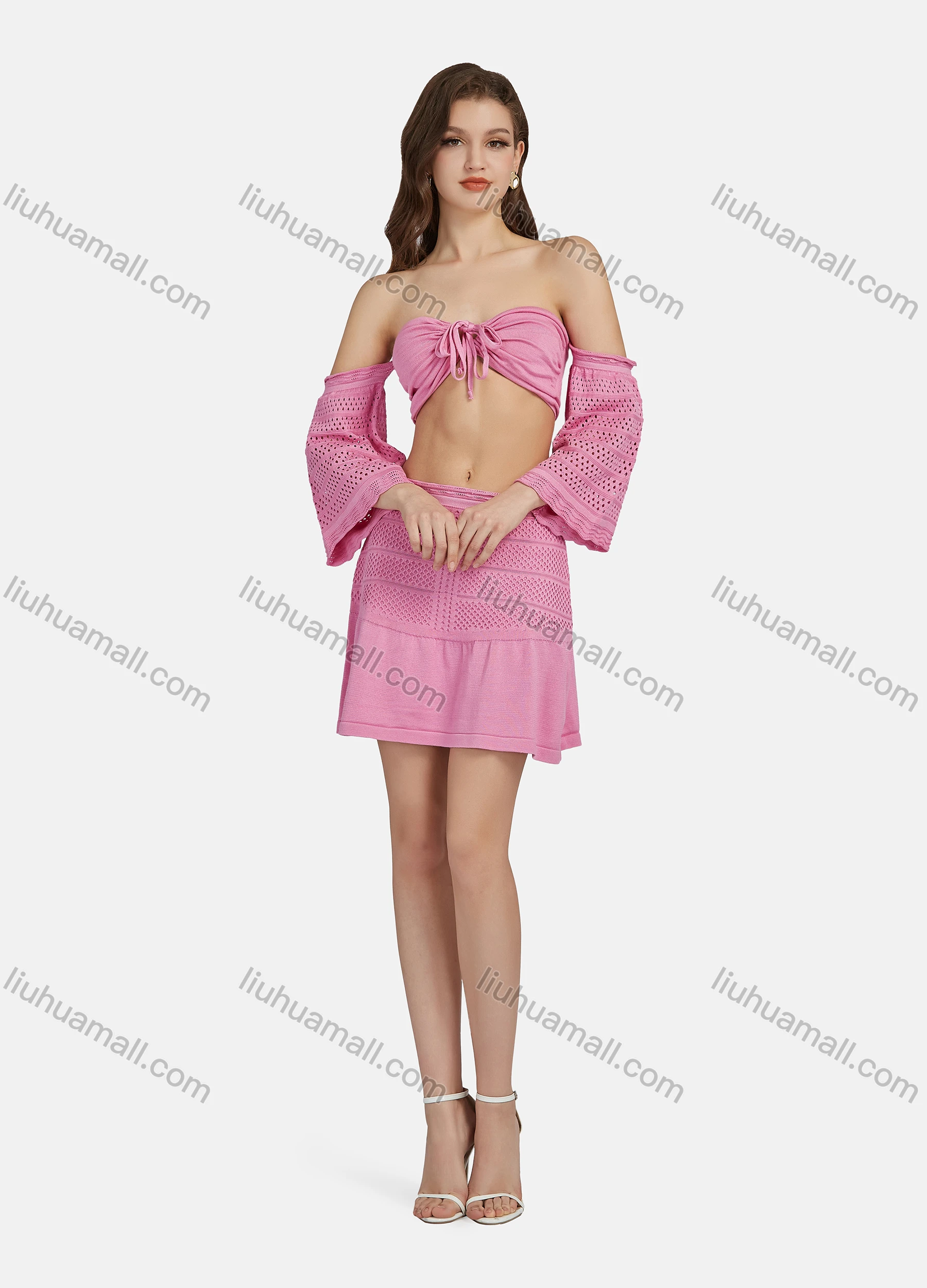 Wholesale Women's Sexy Lace Up Half Sleeve Chest Top 2-piece Set AF0044#