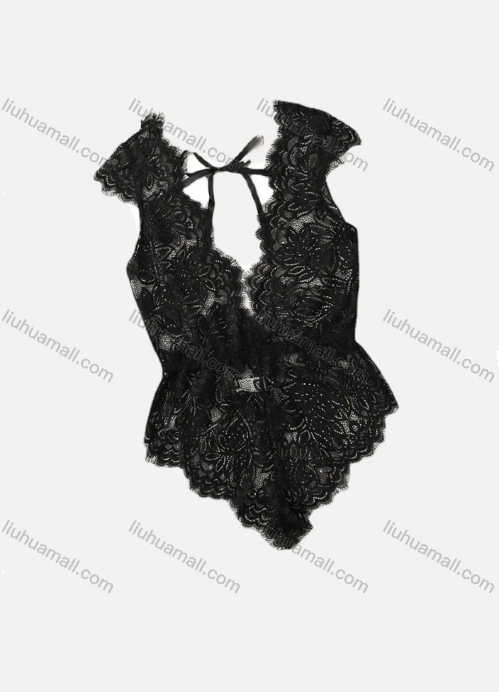 Wholesale Women's Sexy Lace Up See Through Lace One Piece Lingerie Bodysuit 1347#