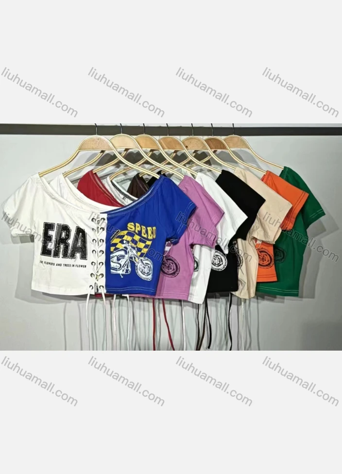 Wholesale Women's Sexy Off Shoulder Short Sleeve Criss Cross Drawstring Crop Top