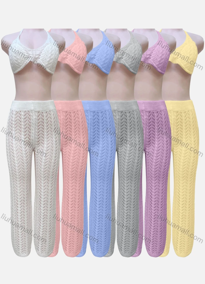 Wholesale Women's Sexy Plain Halter Cover Up Crop Top 2-Piece Set J16#