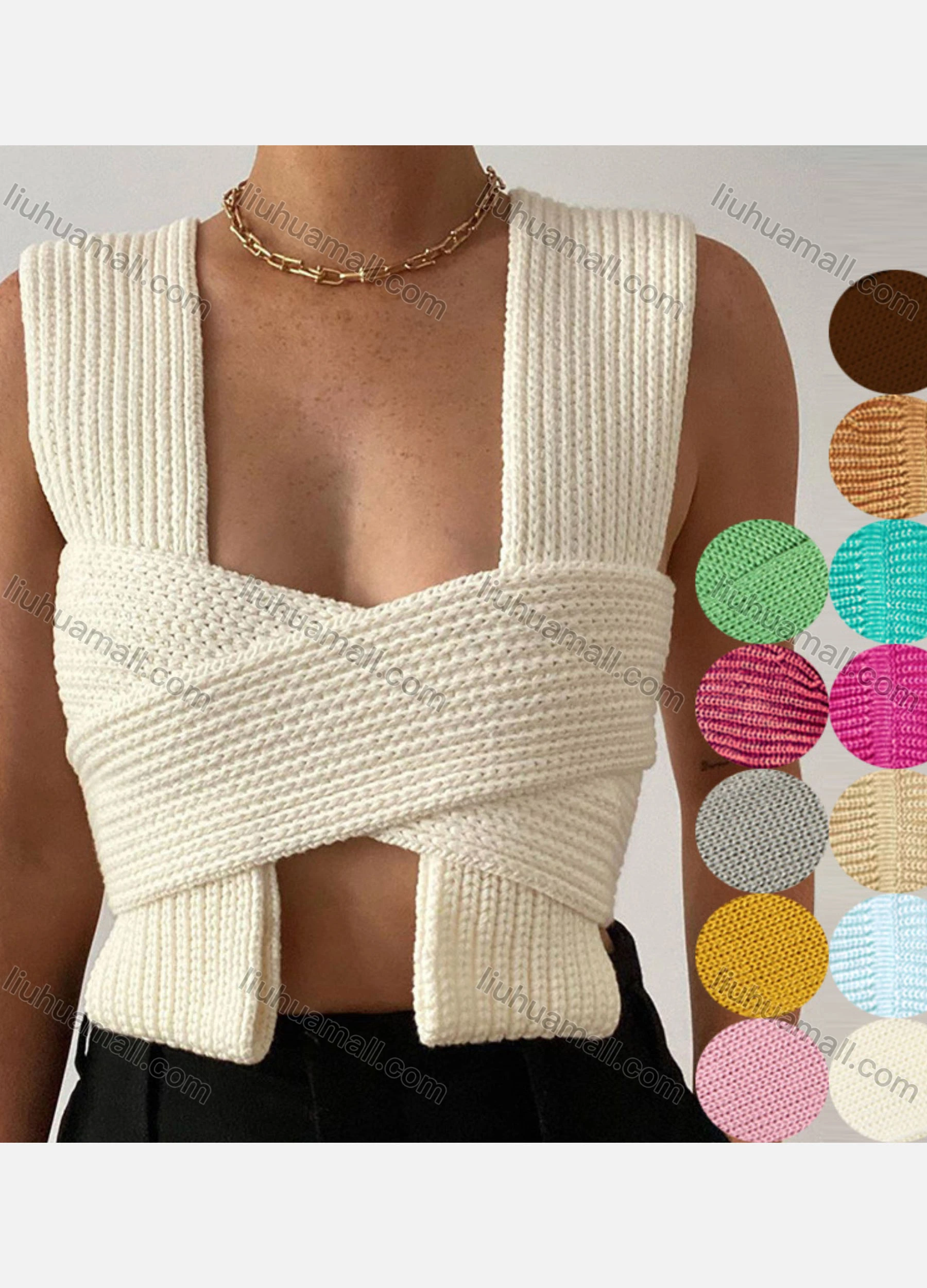 Wholesale Women's Sexy Plain Wrap Crossover Chunky Knit Tank Sweater