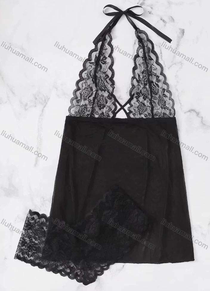Wholesale Women's Sexy See Through Lace Applique Nightgown&Panty 2 Piece Lingerie Sets 1295#