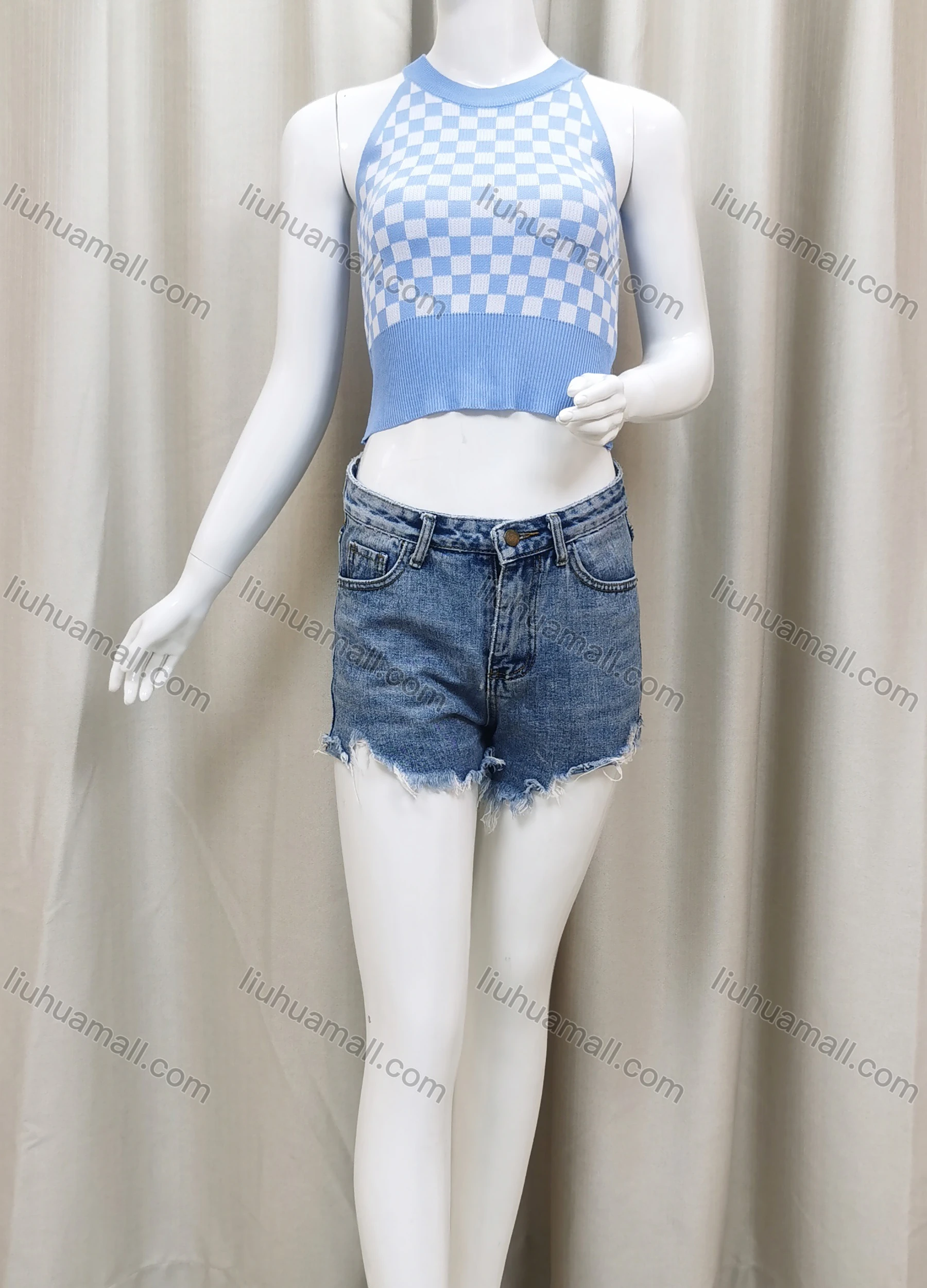 Wholesale Women's Slim Round Neck Sleeveless Checkerboard Print Tank Top