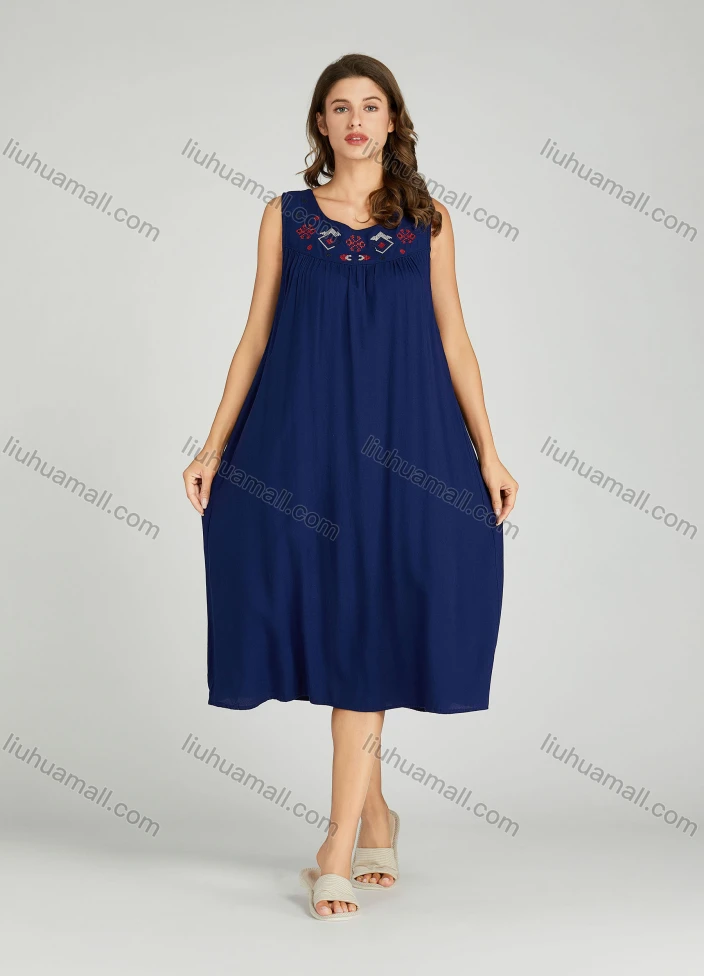 Wholesale Women's Snowflake Embroidered Scoop Neck Ruched Lounge Midi Sleeveless Night Dress 221#
