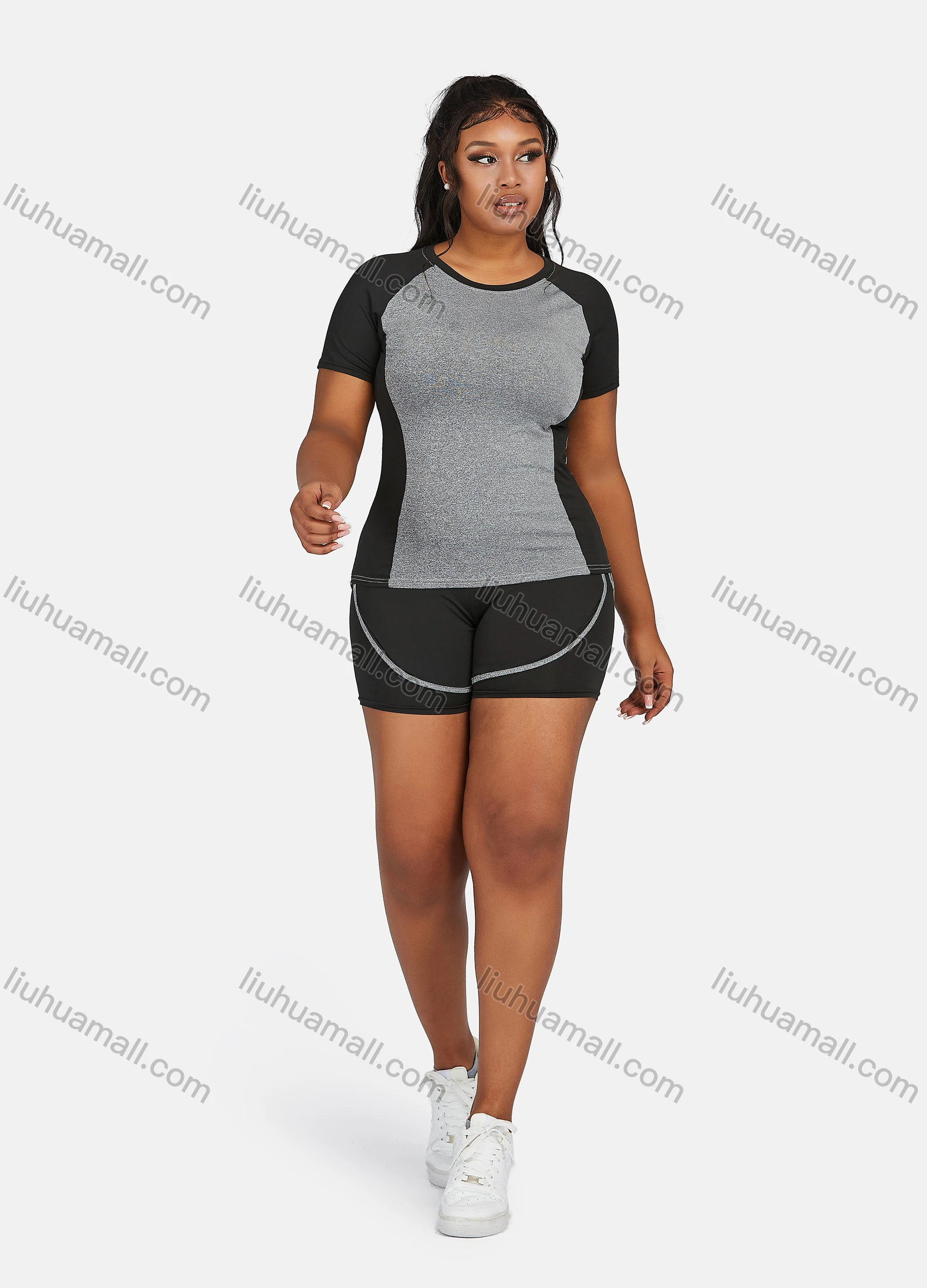 Wholesale Women's Sport Striped Colorblock Crop T-Shirt & Shorts Sets