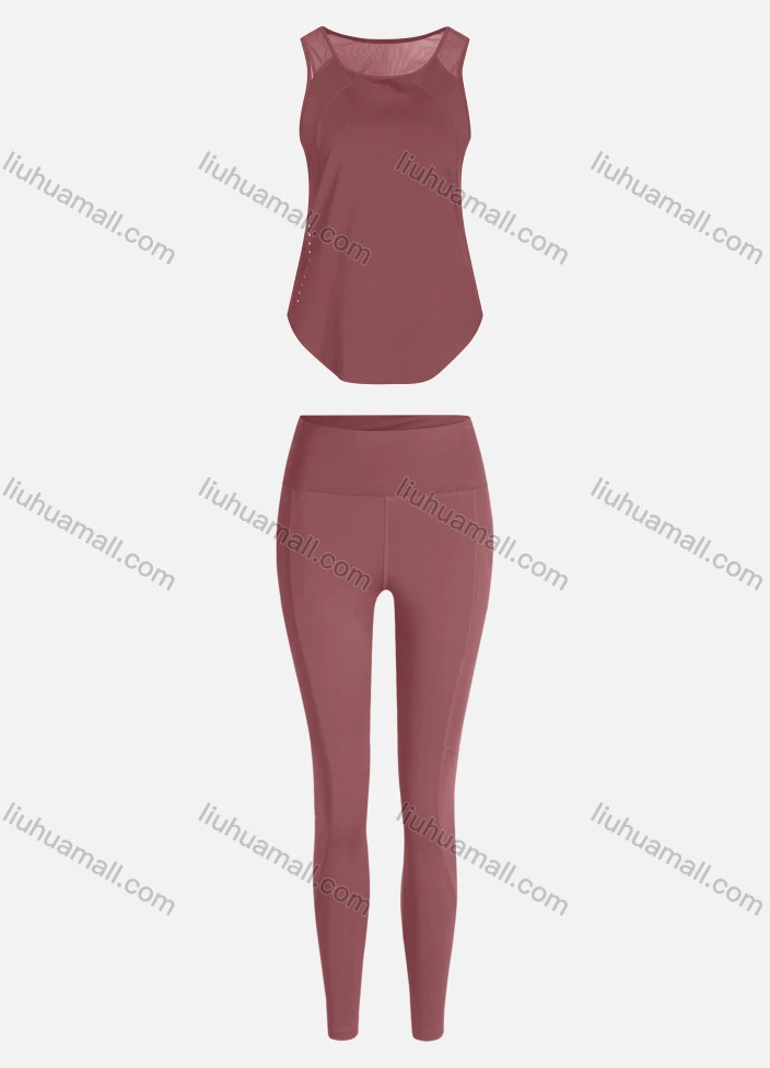 Wholesale Women's Sporty Breathable Mesh Quick Dry Plain Tank Top & Seamless Leggings 2 Piece Yoga Workout Outfits 1009#&1016#