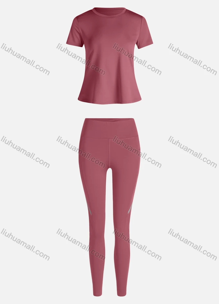 Wholesale Women's Sporty Breathable Quick Dry Letter T-shirt & High Waist Leggings 2 Piece Yoga Workout Outfits 1006#&1015#