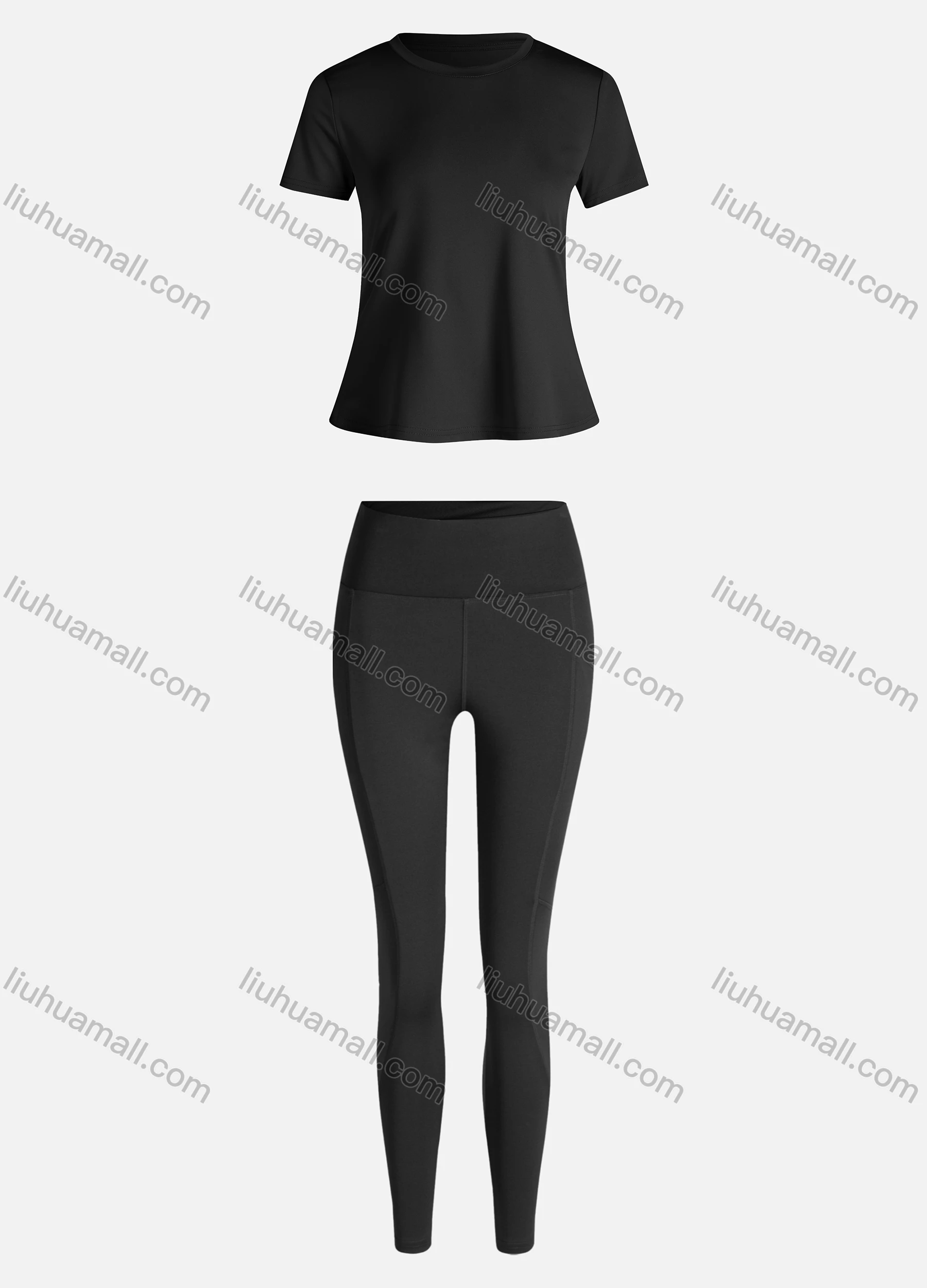Wholesale Women's Sporty Breathable Quick Dry Letter T-shirt & High Waist Leggings 2 Piece Yoga Workout Outfits 1008#&1015#