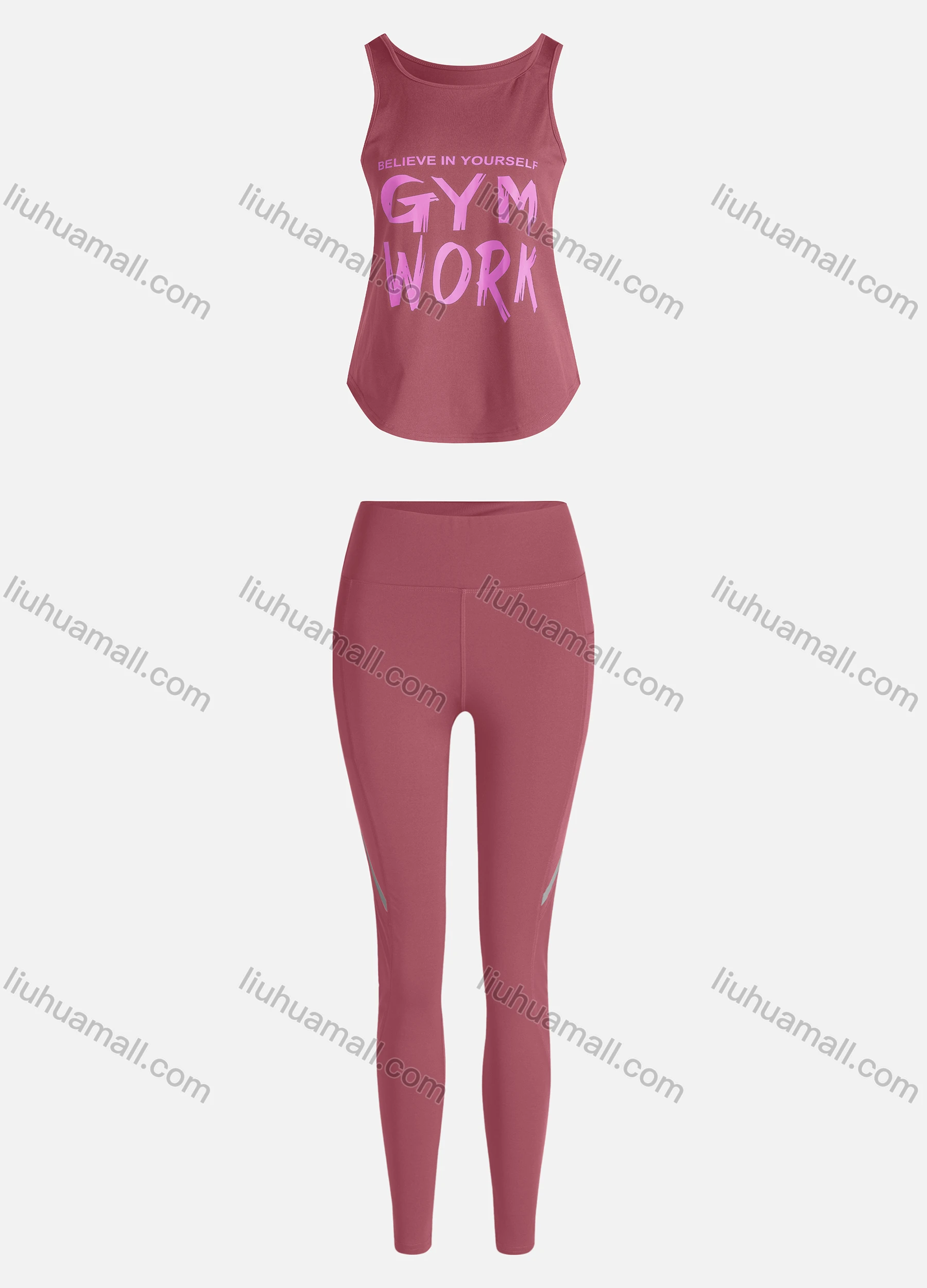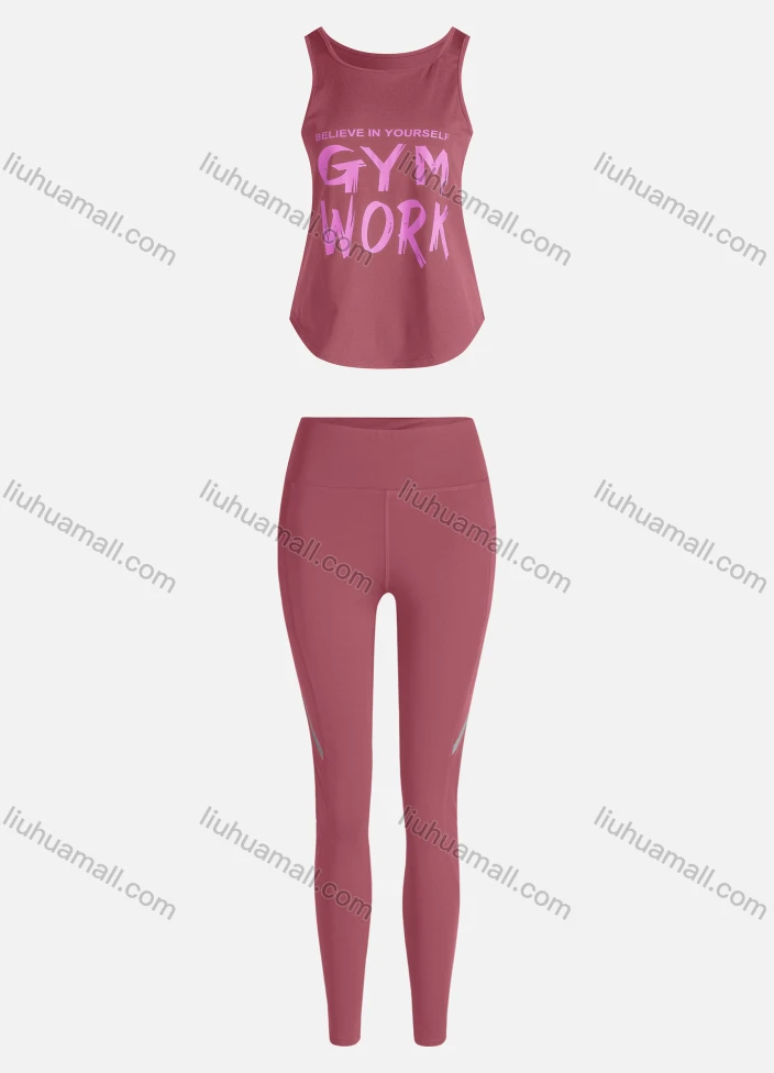 Wholesale Women's Sporty Breathable Quick Dry Letter Tank Top & High Waist Leggings 2 Piece Yoga Workout Outfits 1006#&1014#