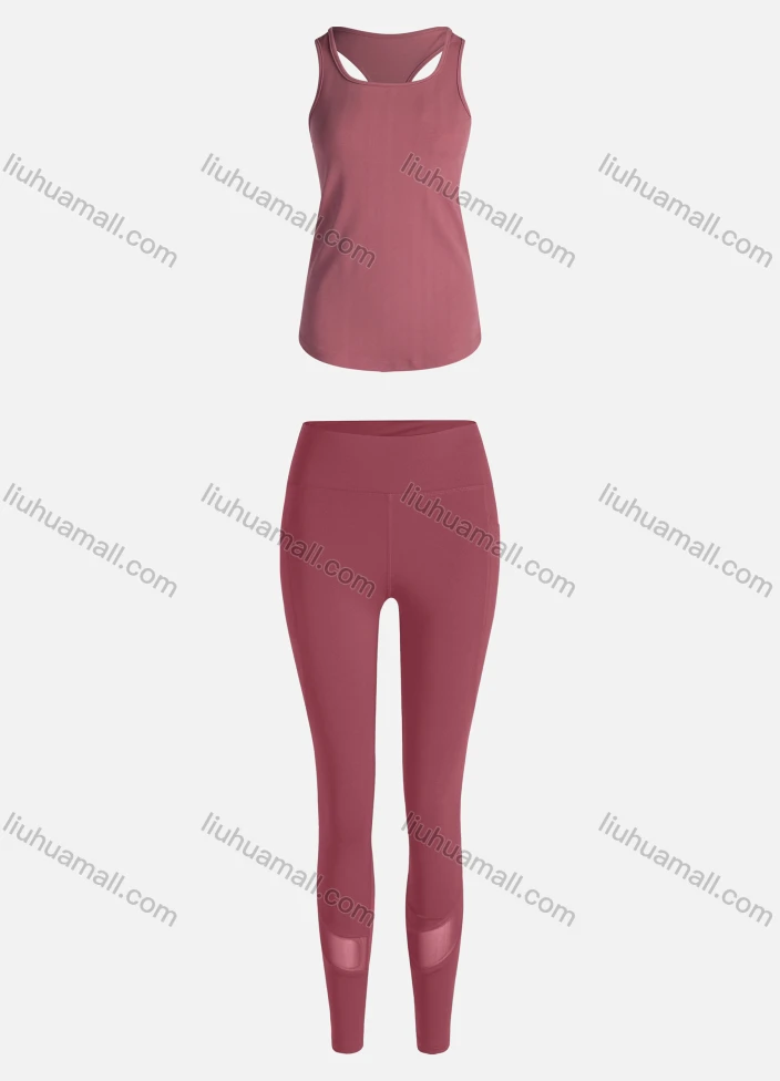 Wholesale Women's Sporty Breathable Quick Dry Letter Tank Top & High Waist Leggings 2 Piece Yoga Workout Outfits 1007#&1010#