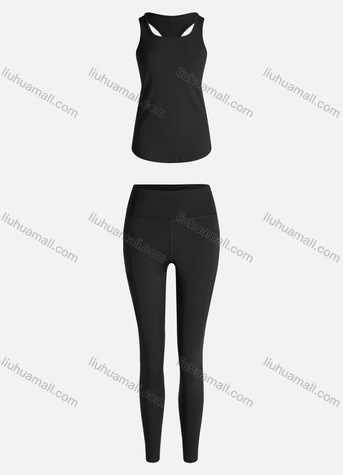 Wholesale Women's Sporty Breathable Quick Dry Letter Tank Top & High Waist Leggings 2 Piece Yoga Workout Outfits 1009#&1010#