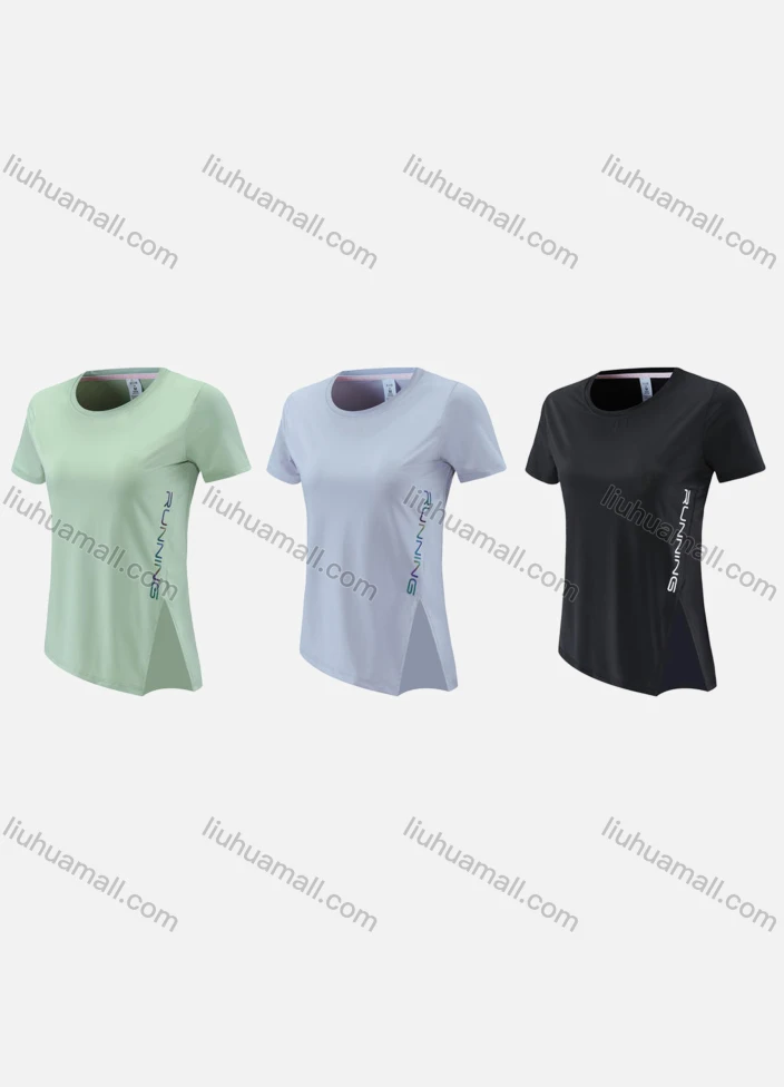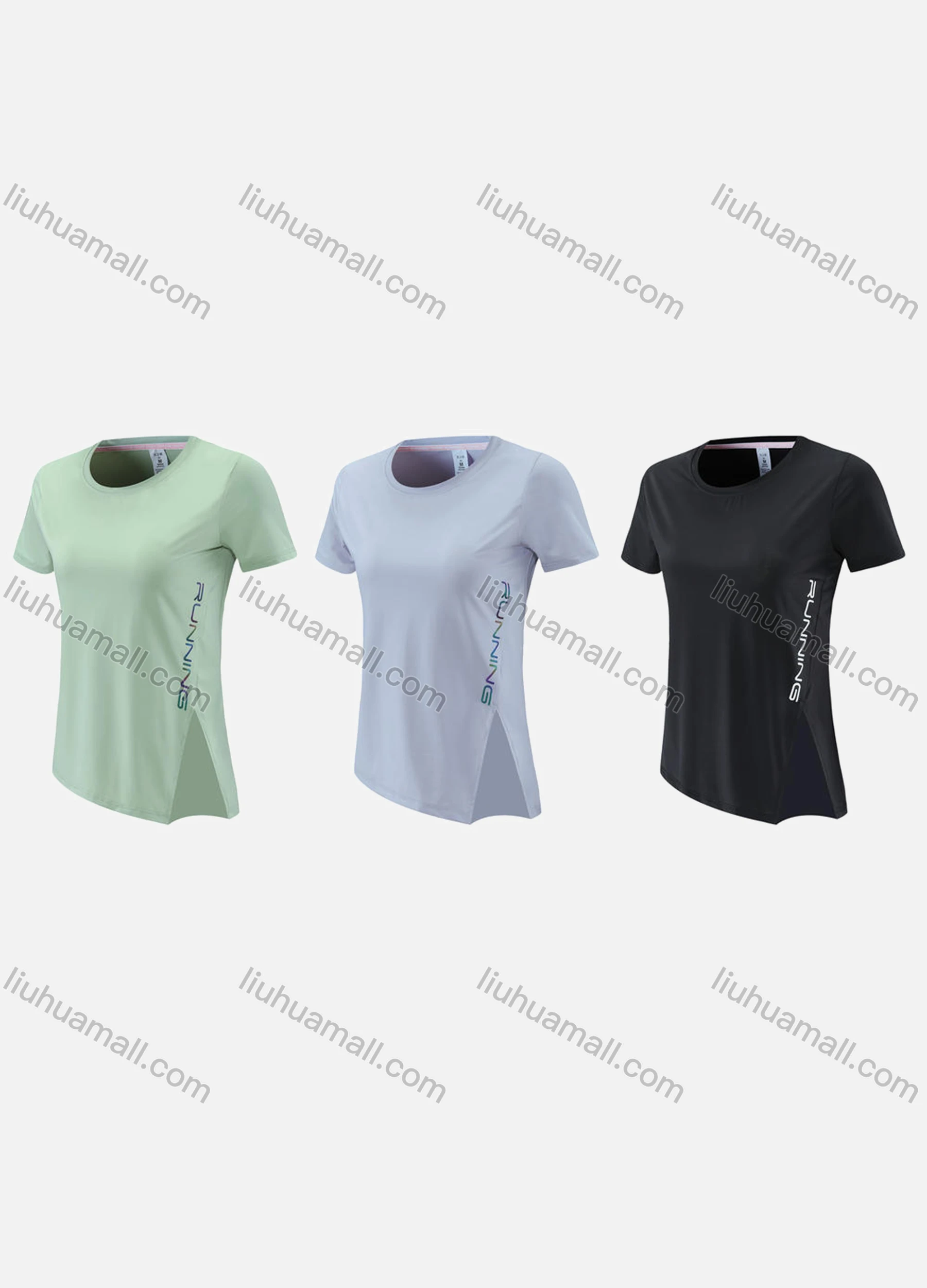 Wholesale Women's Sporty Round Neck Short Sleeve Quick Dry High Stretch Sport Slit T-shirt WT21619#