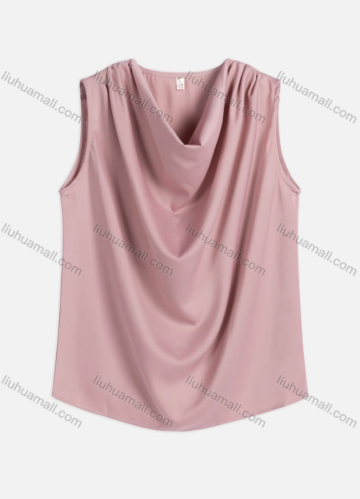 Wholesale Women's Summer Plain Casual Satin Sleeveless Cowl Neck Blouse 2106#