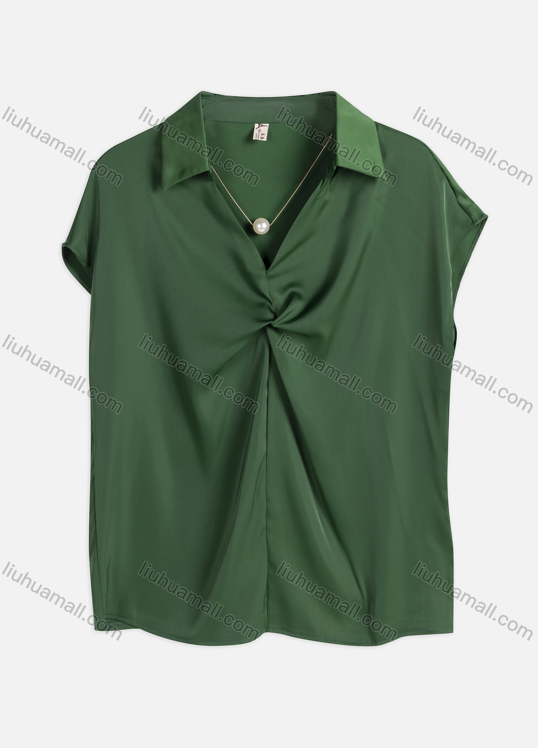 Wholesale Women's Summer Plain Pearl Embellish Casual Satin Collared Top Leisure Shirt 8808#