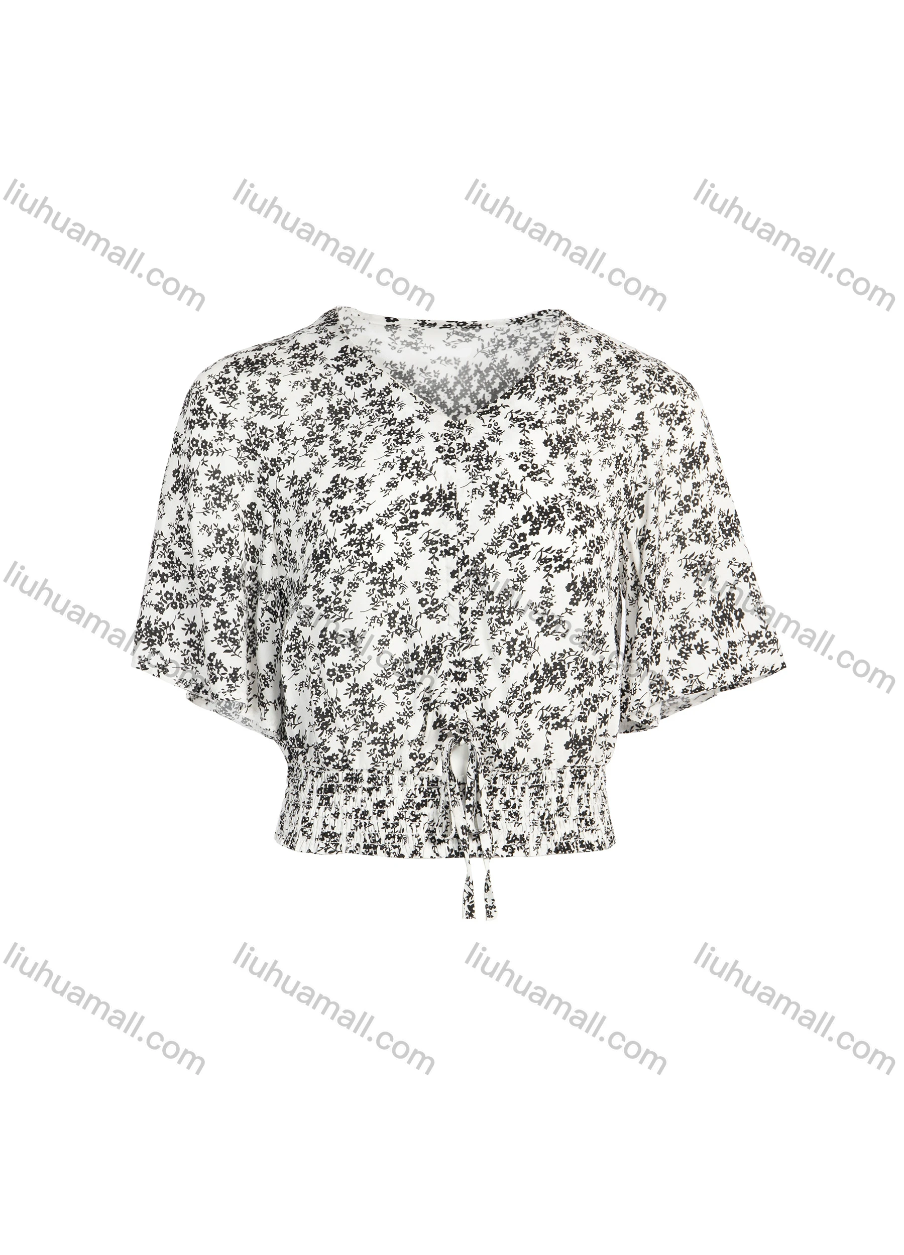 Wholesale Women's Summer V-Neck Butterfly Sleeve Crop Ditsy Floral Print Blouse
