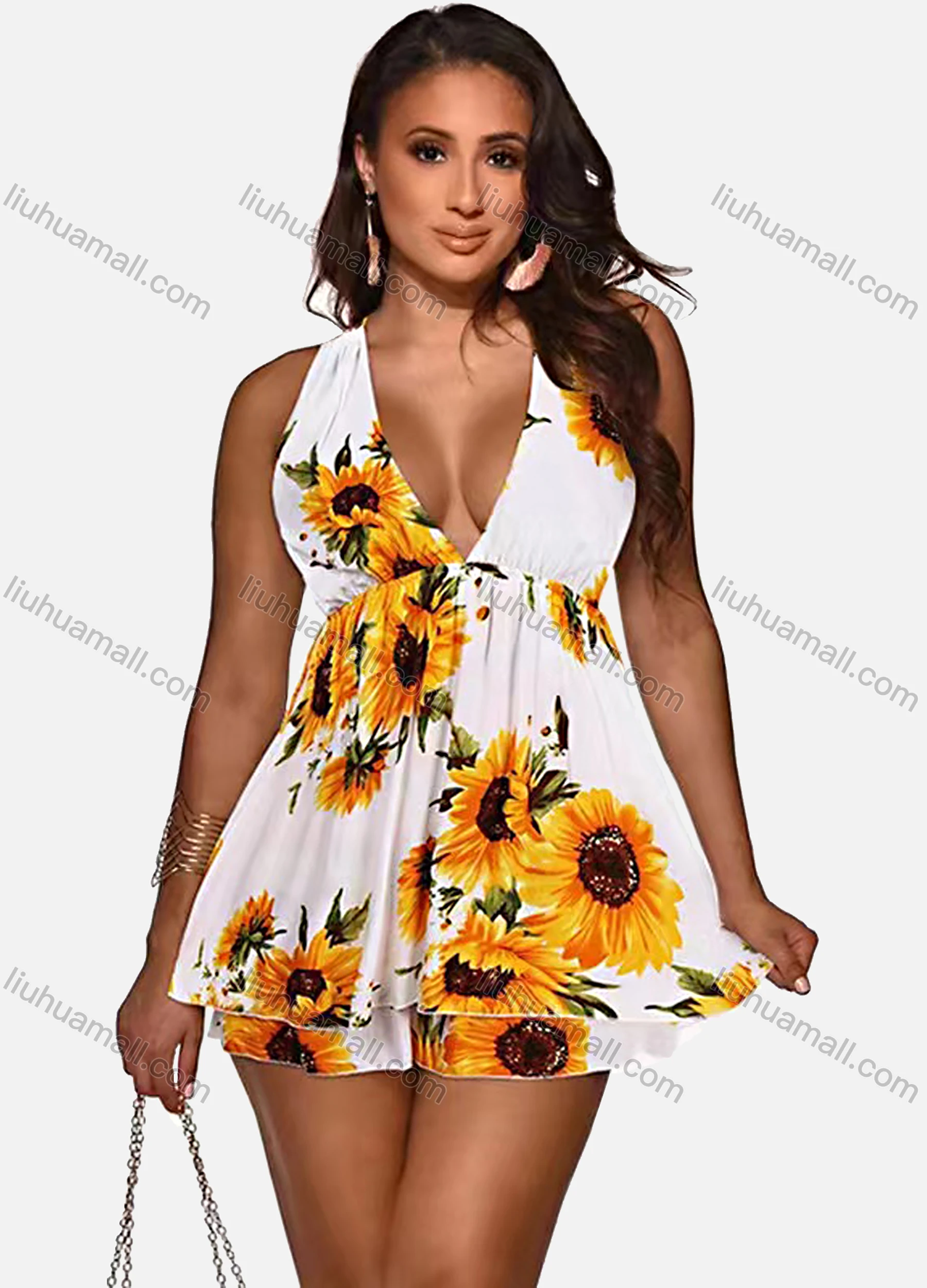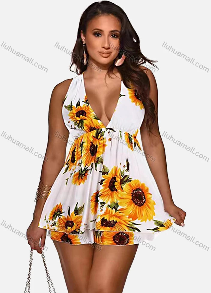 Wholesale Women's Sunflower Print Cold Shoulder Cami Dress