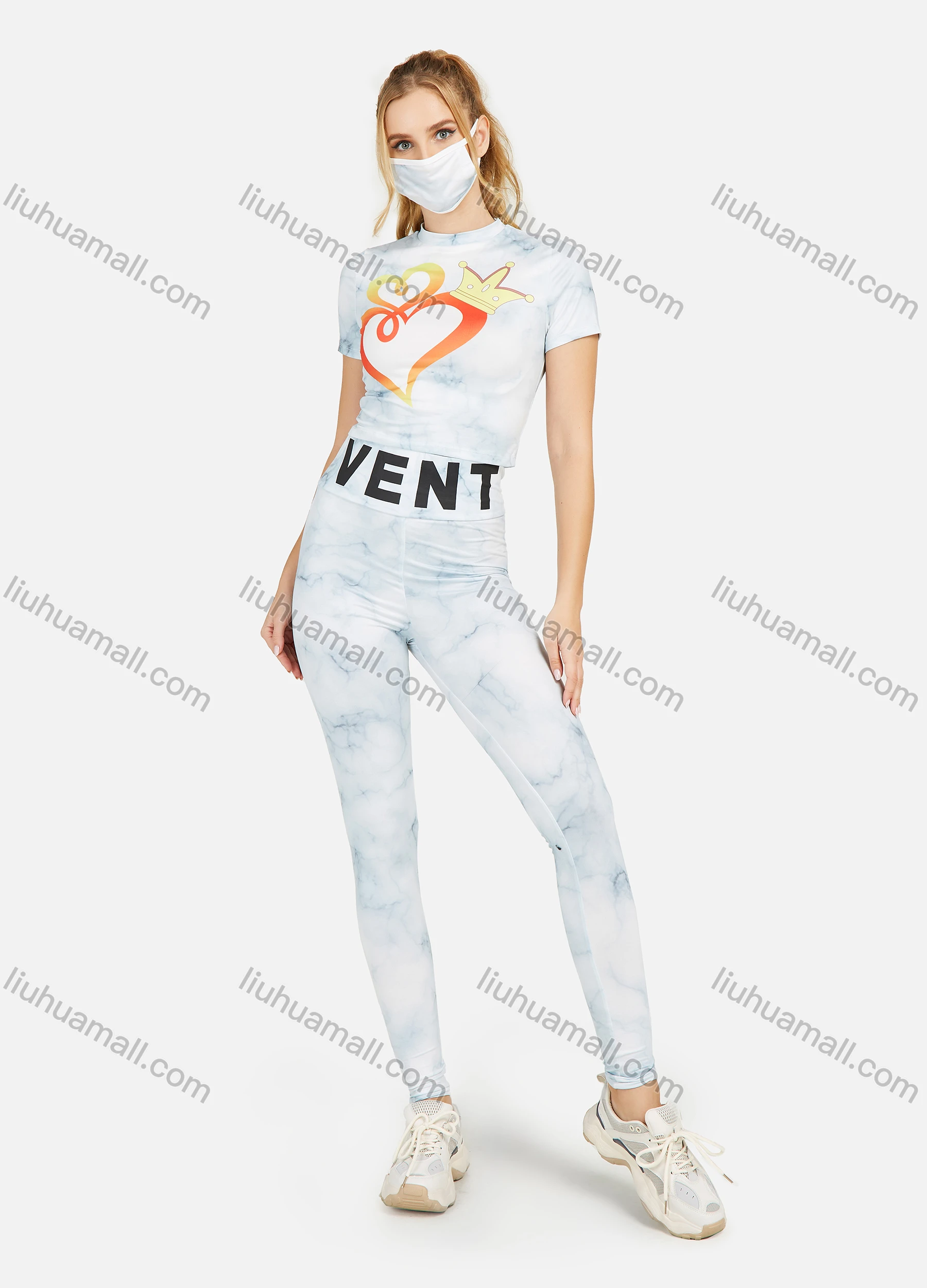 Wholesale Women's Tie Dye Mock Neck Tee With High Waist Leggings 2 Piece Set