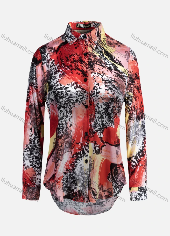 Wholesale Women's Vintage Long Sleeve Floral Collared Button Down Shirt 23072#