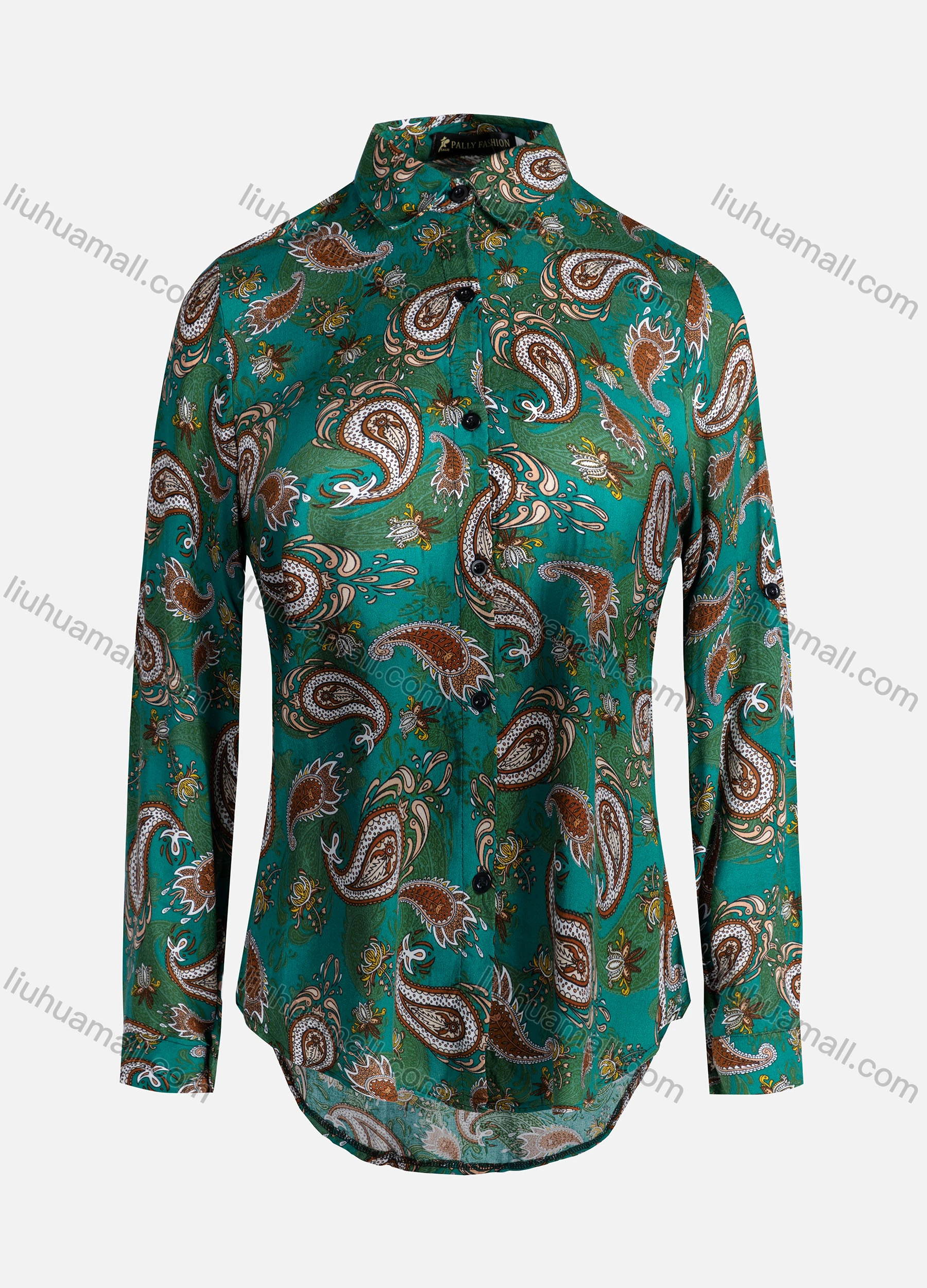 Wholesale Women's Vintage Long Sleeve Paisley Pattern Button Down Shirt 23073#