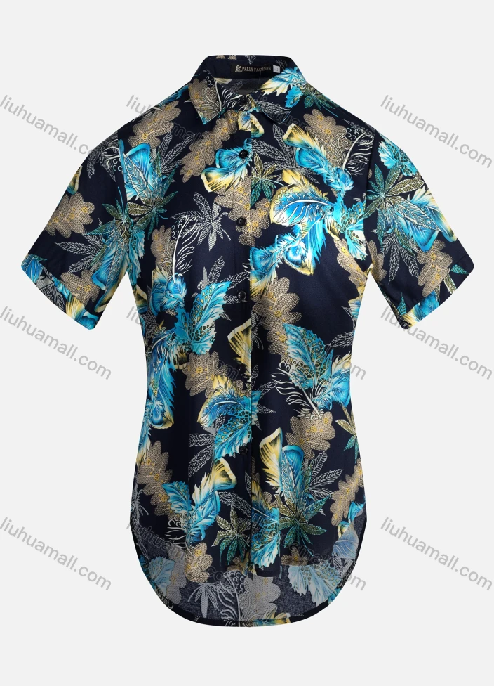 Wholesale Women's Vintage Short Sleeve Botanical Pattern Collared Button Down Shirt 23051#