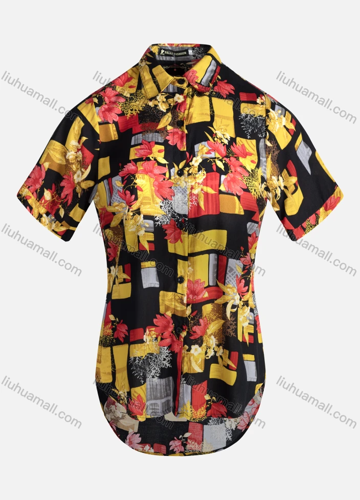 Wholesale Women's Vintage Short Sleeve Colorblock Floral Pattern Collared Button Down Shirt 23053#